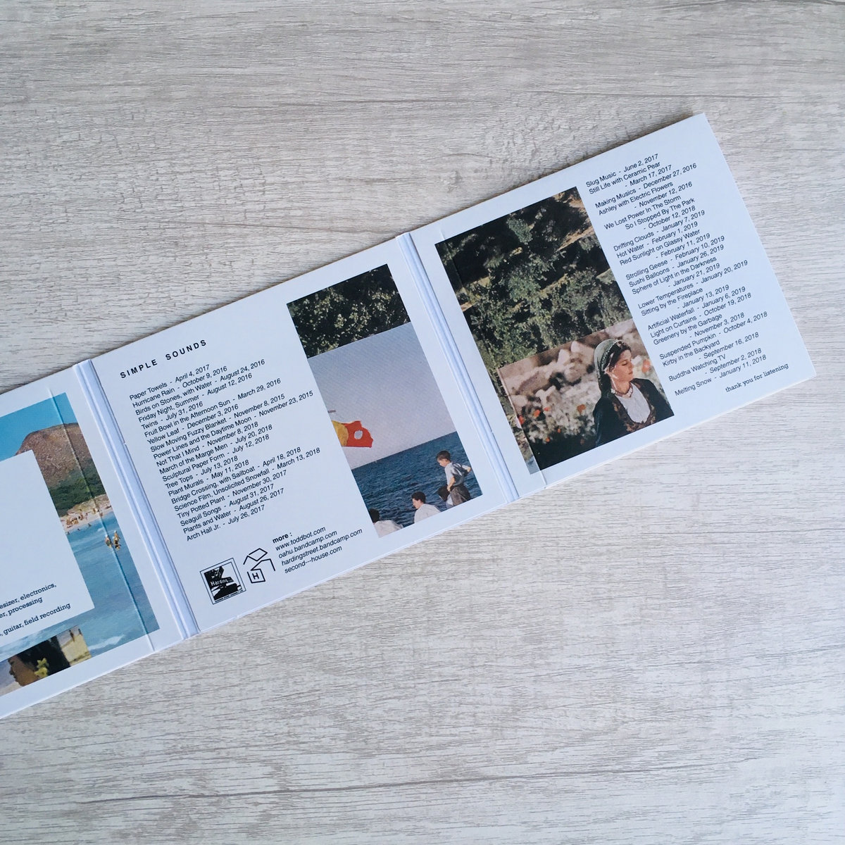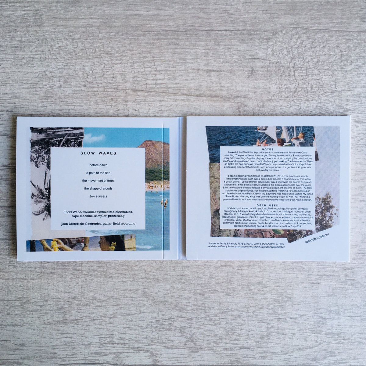 I began recording #dailybleeps on october 28, 2015. The process is simple: I film something I see each day and before bed I record a soundtrack for that video and post it online. I use a different setup every day and improvise the scores as quickly as possible. It has been great fun watching the pieces accumulate over the years and I'm very excited to finally release a physical document of some of them. The titles match their original videos. For instance "Buddha Watching TV" accompanies an art piece by Nam June Paik, "Kirby in the Backyard" was made while visiting my friend Steve Roden - his dog Kirby was outside wanting to join in. "Not That I Mind" is a personal favorite as it soundtracked a collaborative video with poet Aram Saroyan.